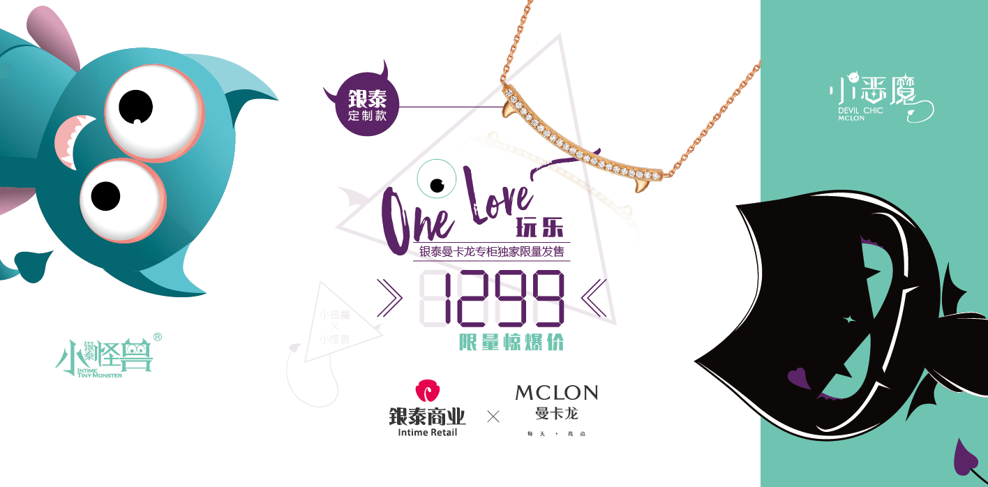 今年年中庆活动,银泰集团跨界联合MCLON曼卡龙珠宝,推出合作款“小恶魔·玩乐ONE LOVE”周年庆定制款项链,从品牌个性契合度到产品概念,都成为年中营销和产品推广的亮点。