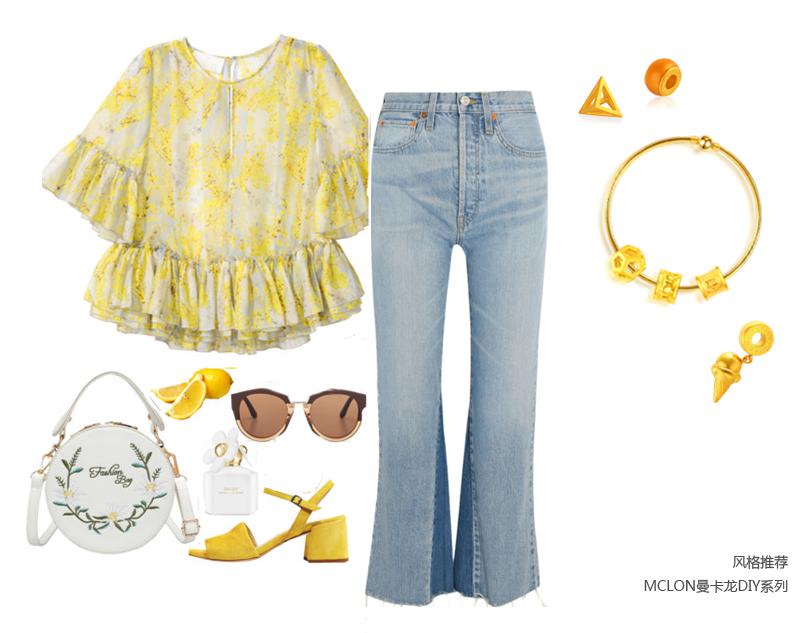樱草黄色系单品,戴对珠宝更显夏日感。MCLON曼卡龙DIY系列,可随心搭配手镯、项链、chocker,足金材质打造匠心独具的时尚设计,个性十足,让你变身俏皮活力的夏日女孩。MCLON曼卡龙DIY系列搭配黄色系单品,不论是约会、职场、日常都能让你成为焦点。