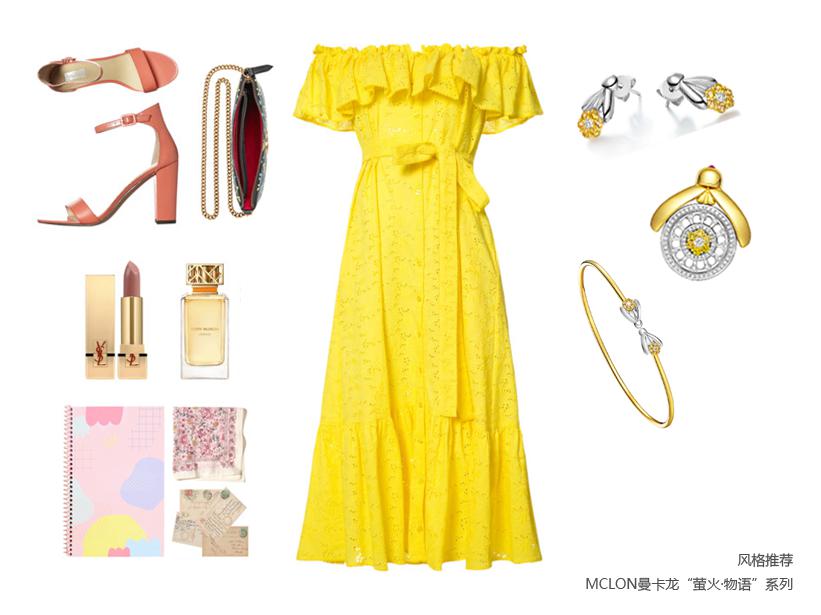 樱草黄色系单品,戴对珠宝更显夏日感。MCLON曼卡龙DIY系列,可随心搭配手镯、项链、chocker,足金材质打造匠心独具的时尚设计,个性十足,让你变身俏皮活力的夏日女孩。MCLON曼卡龙DIY系列搭配黄色系单品,不论是约会、职场、日常都能让你成为焦点。