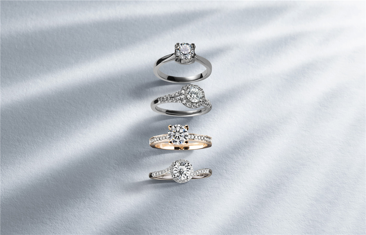 整个款式的戒臂呈现一个环抱的姿态,戒臂就像一双温柔的手试图去守护中间的主石。爱情中的守护也是一样,用双手去保护自己所爱的人,把TA捧在手掌。该款整体比较华丽,戒臂和主石周围镶满了璀璨小钻,从正面看戒臂和围绕主石的戒托融为一体,线条柔美流畅,华丽优雅中更显时尚别致。